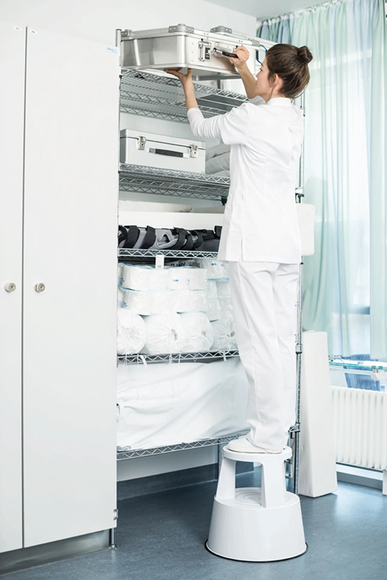 Bordázott, csúszásmentes fellépő felület. Gurulós kivitel fékezhető kerekekkel. Biztonságos állás a szabadalmaztatott, automatikusan visszahúzódó kerekeknek és csúszást akadályozó gumiperemnek köszönhetően. Állófelület átmérője 30 cm.